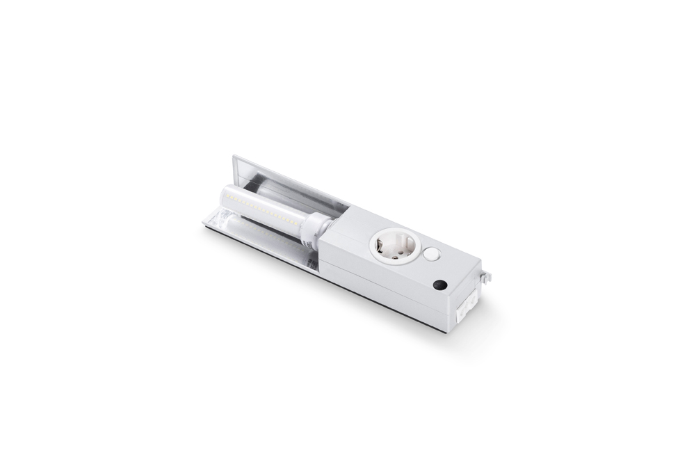Die leichte, kompakte LED-Schaltschrankleuchte aus Kunststoff mit einer Helligkeit von 1300 Lumen ist ausgelegt für den Spannungsbereich von 210 bis 240 Volt. Die Leuchte hat ein 12 W-LED-Leuchtmittel, einen Netzanschluss, eine Steckdose sowie einen Ein-/Ausschalter. Alternativ sind Türpositionsschalter oder Bewegungsmelder möglich. Die Befestigung der Leuchte erfolgt standardmäßig ohne Werkzeug nach dem Snap-In-Prinzip, auf Wunsch aber auch mit Magnetbefestigung. Die Leuchte ist geeignet für den Einbau in Schaltschränke ab 500 mm Breite.
